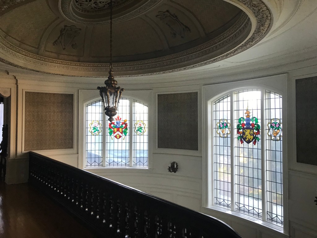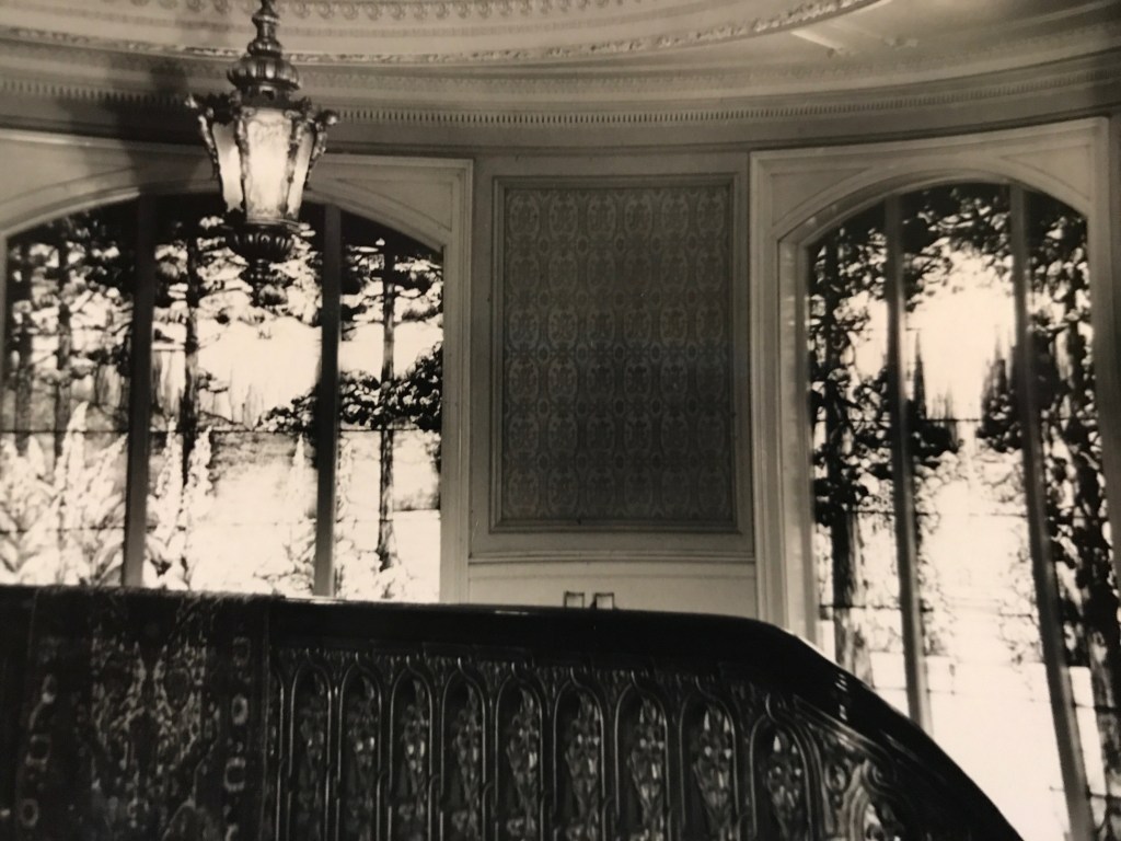 The Pittsburgh Tribune Review noted the United Steelworkers Union sold the Tiffany Windows for $6.8 million. Colleen Moore of USW said the sale was an effort to pare insurance costs. Linden Hall feels a bit empty with the replacement windows as shown below.